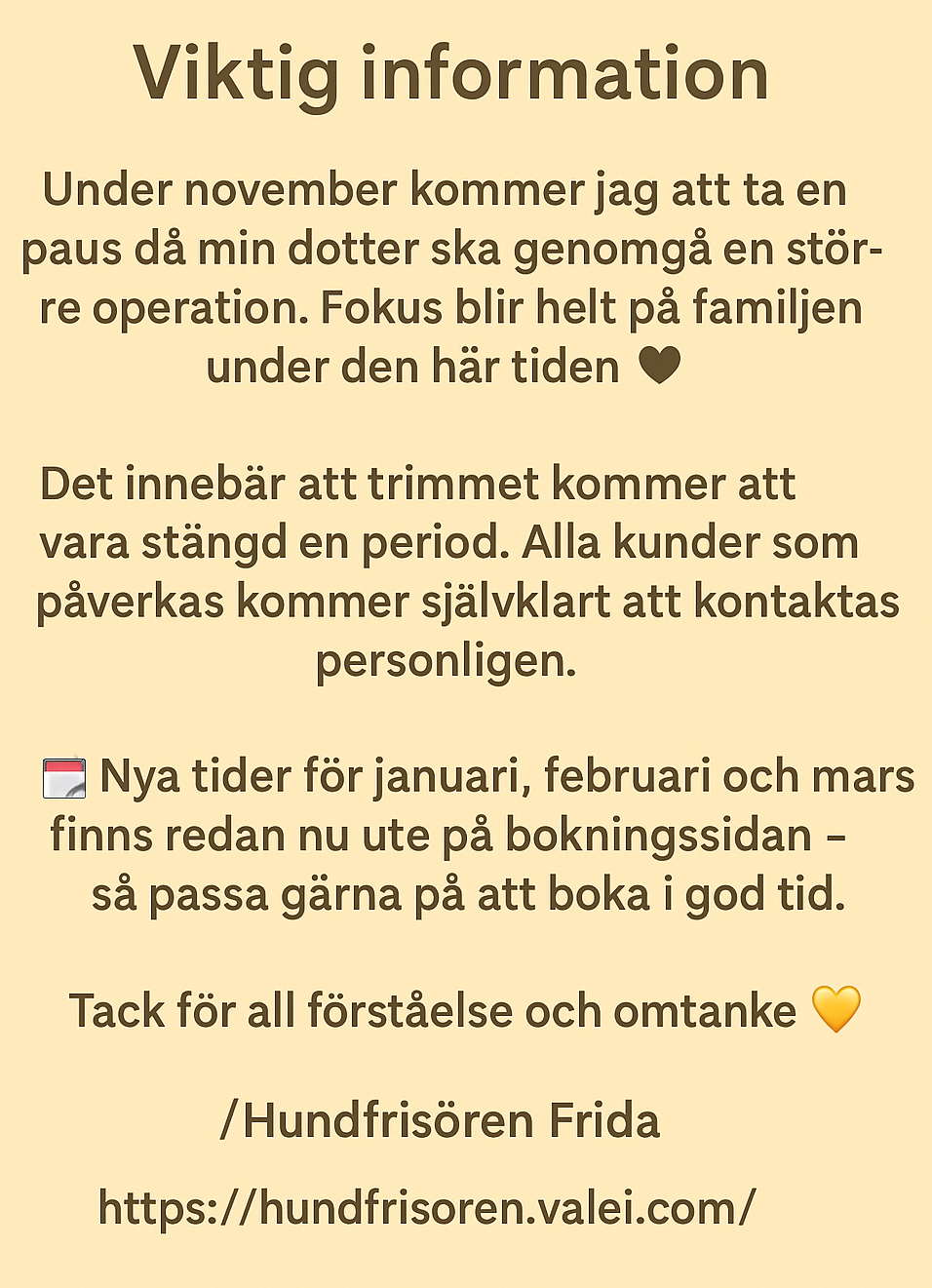 🐾 Varmt välkommen – både nya och gamla kunder! 🐾 3/9/2024 0 Kommentarer Slut på kvälls & helgtider